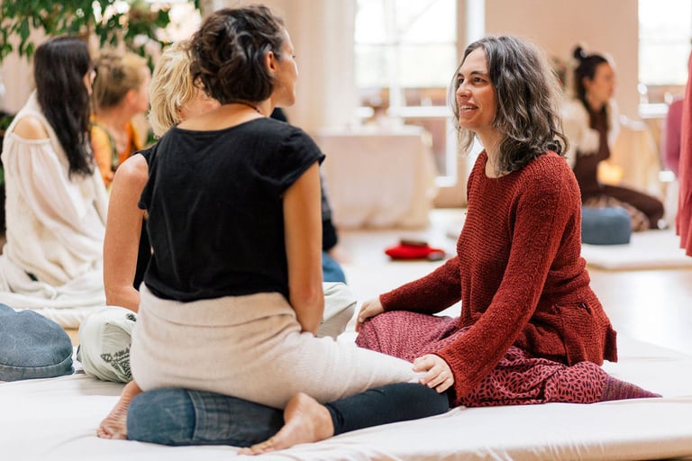 Das 9 Monatsprogramm half mir, einige meiner in Vergessenheit geratenen Anteile wiederzuerkennen und zu umarmen. Ich bin weicher, sanfter, schöner und lebendiger geworden. In den 9 Monaten wuchs das Vertrauen in meine Schwestern, ich konnte immer entspannter dabei sein, wahrnehmen und mich tief auf die praktischen Übungen einlassen. Ich genoss das Essen, die Berührungen, den Tanz, das Mantra-Singen und das Schweigen in vertrauter Gesellschaft. Ich liebe und bewundere Yashodharas Arbeit und Kunst, mit ihrer Authentizität, Weisheit, Humor und Gelassenheit, Frauen zu versammeln und zusammen mit ihrem Team ihnen einen so wunderbaren Raum für Transformation zu schaffen. ~ Eszter Omai